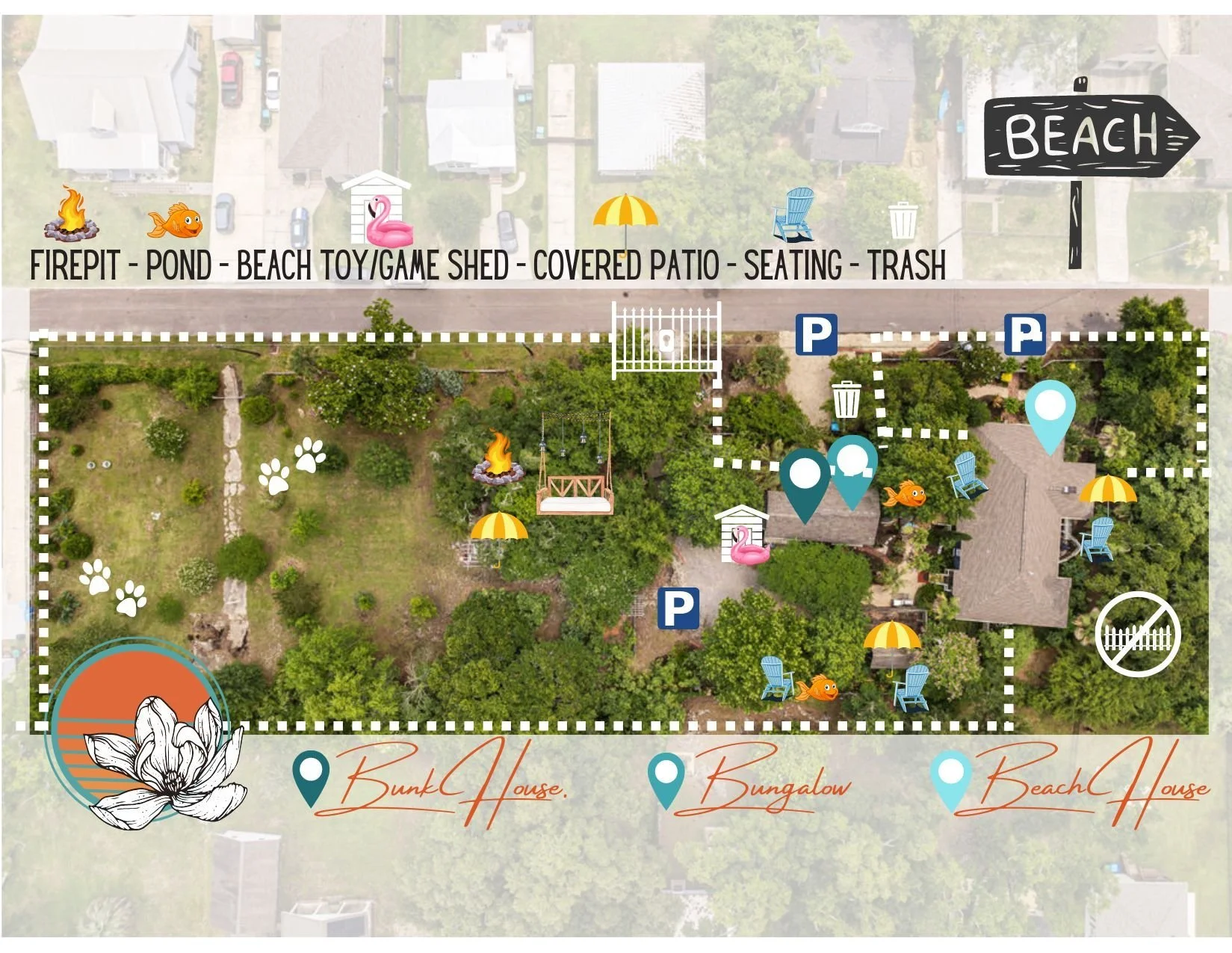 Look here for information on where to park, where to put the trash, where to go and relax and where to see the goldfish. It’s intent is to provide you an overview of what to expect when you visit any one of our three homes on this family vacation compound.